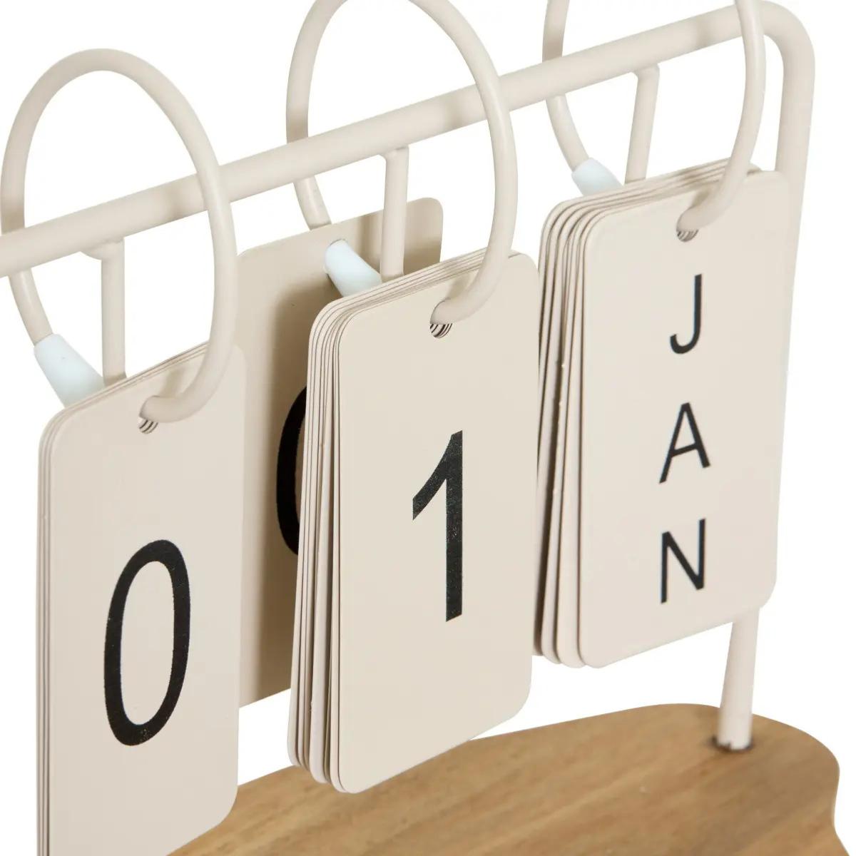 Calendrier Perpétuel en Métal Beige & Bois – Style Industriel Chic 📅
