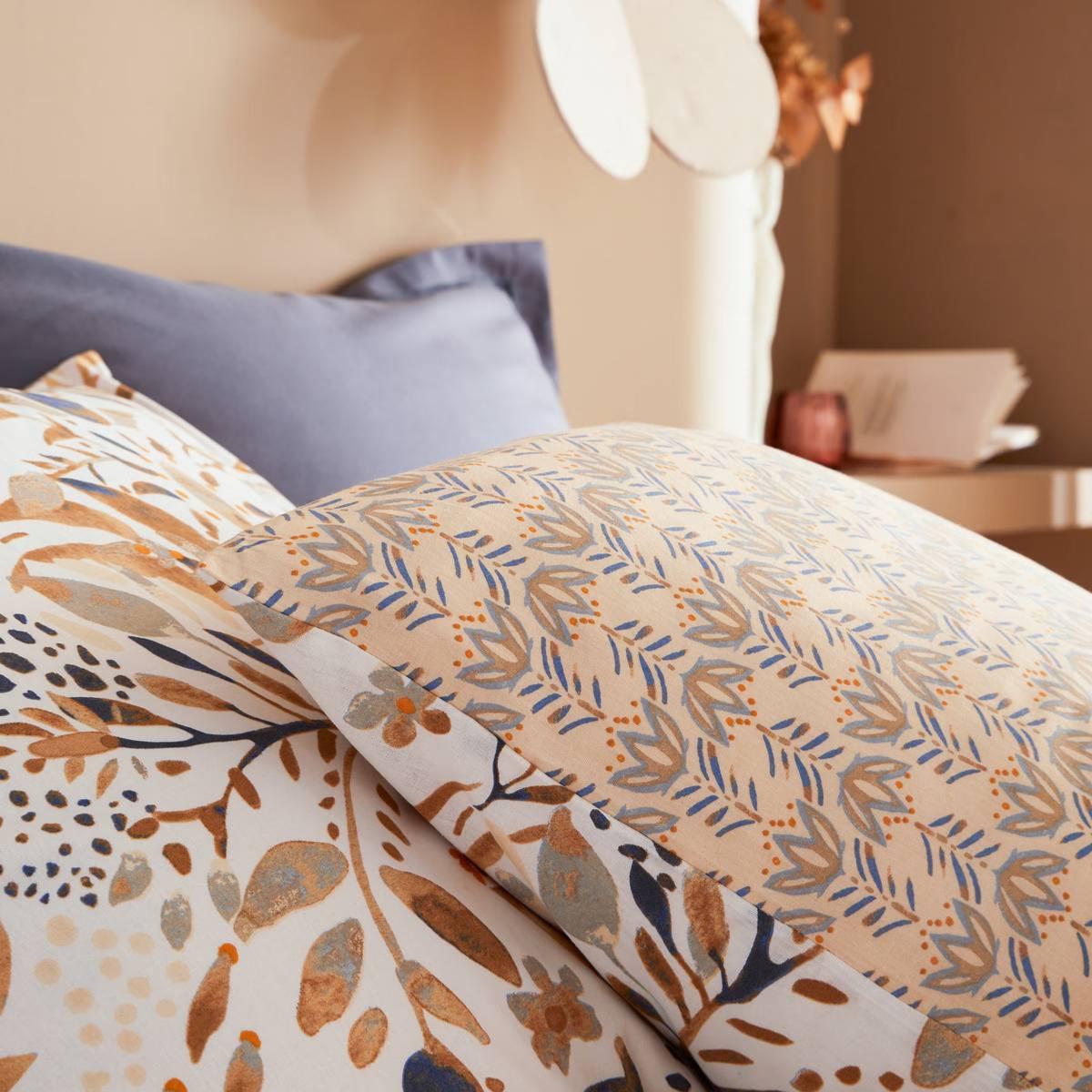 Parure de lit réversible 220x240 cm – Motifs Floraux Stylisés Beige & Bleu 🛏️ 🌿