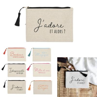 Pochette Message Toile de Jute Pompon fermeture zippée 20 x 15 cm